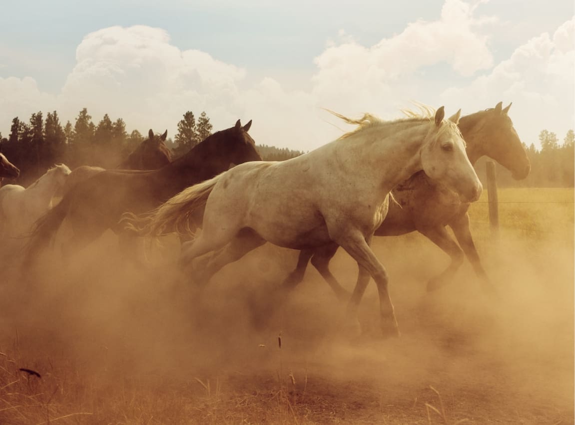The early morning hours here at Paws Up mean one important thing to our steadfast horse wranglers: time to wake up and smell the horses! It’s a little like our own version of reveille. As soon as the sun rises, we get up, saddle up, and gather the herd. Whether you’re a morning person, a horse lover or both, you’ll want to join in the fun. You’ll be helping a wrangler collect our ranch horses for the day’s adventures.