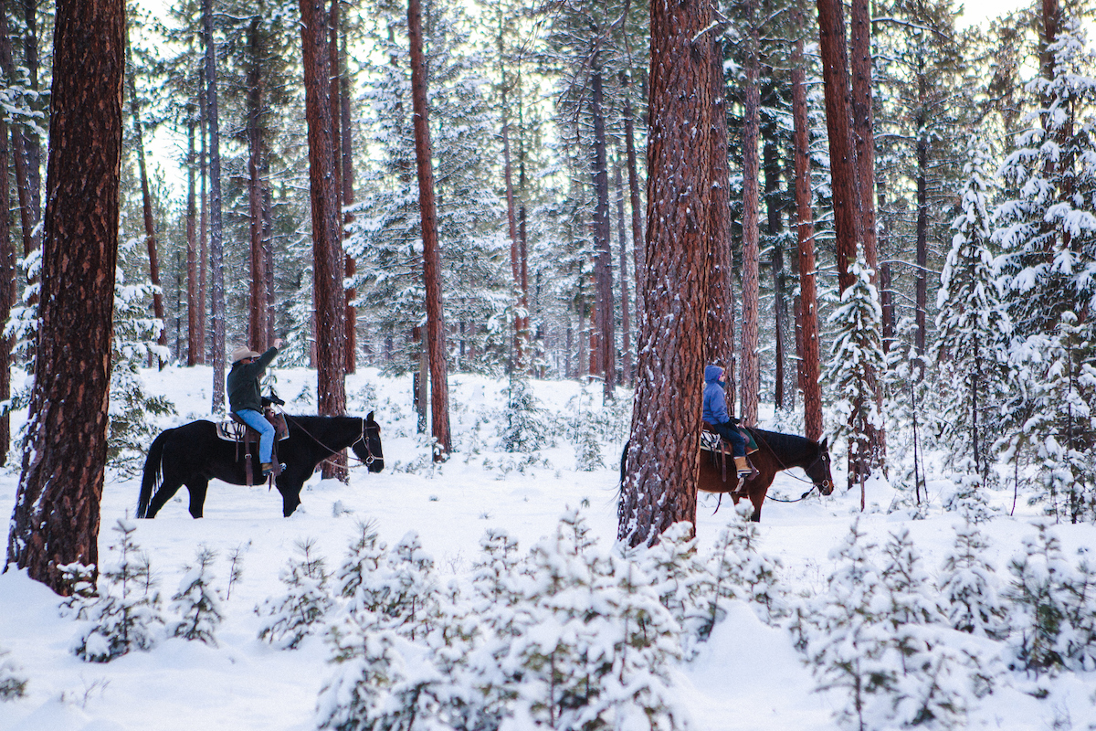 This equestrian excursion takes you through snow-covered trees